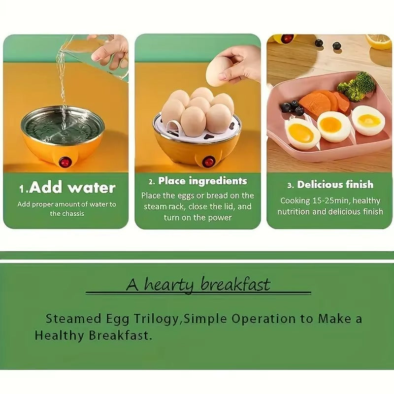 • Fácil de Usar: Simplemente añade agua, coloca los huevos, y con un toque de botón, ¡estarán listos en minutos!
