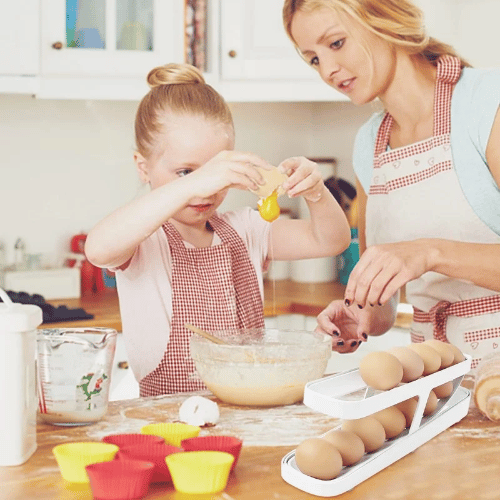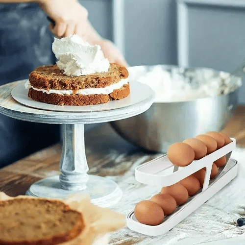 Di adiós a los cartones incómodos y dale a tu cocina un toque de orden y practicidad con el Organizador de Huevos Deslizante de 2 Niveles.