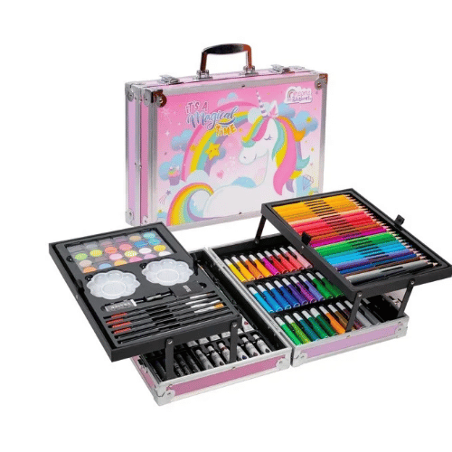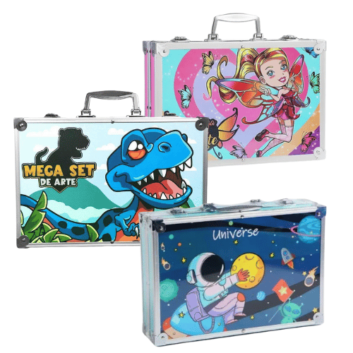 Haz que tus hijos den rienda suelta a su imaginación con este completo set artístico de 145 piezas, ideal para pintar, dibujar y crear sin límites. Diseñado para niños y niñas de todas las edades, viene en una elegante maleta de aluminio que facilita su transporte y organización, ¡perfecto para llevar el arte a todas partes!